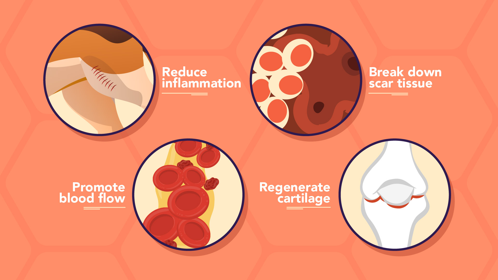 The narrative explains complex science in a clear, engaging way, guiding users through what stem cells are, how they are harvested, and how they support natural repair by reducing inflammation, regenerating cartilage, and improving mobility.
